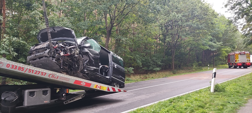 Der Fahrzeugführer des Transporters VW wurde leicht verletzt. Beide Unfallbeteiligten Fahrzeuge wurden völlig zerstört. Bei dem PKW Skoda ist durch die Wucht des Aufpralls gleich der Motorblock herausgerissen worden, er landete am Waldrand. Der Bereich um die Unfallstelle wurde weiträumig abgesperrt.