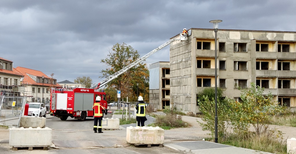 Sturmböen brachten auch am Donnerstagnachmittag starke Ästen an Bäumen zu wackeln, im Olympischen Dorf in Elstal drohten zudem Fassadenteile eines leerstehenden Plattenbaus auf parkende Fahrzeuge zu stürzen. Die Feuerwehr der Gemeinde Wustermark setzte, kam daher zum Einsatz, die Kräfte setzen zur Gefahrenabwehr auch einen Drehleiterwagen ein, um so mit Schneidgerät die losen Blechteile zu entfernen.