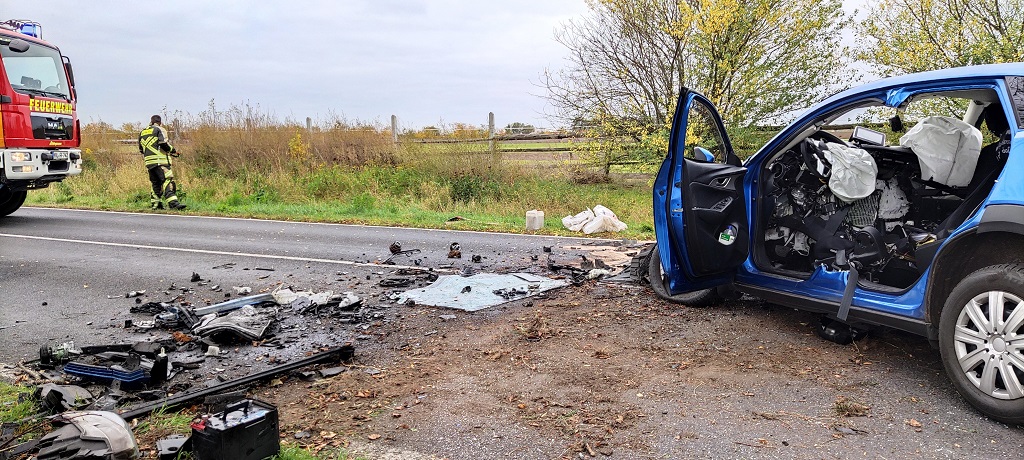 Der PKW Toyota (Berliner Kennzeichen) wurde total zerstört.