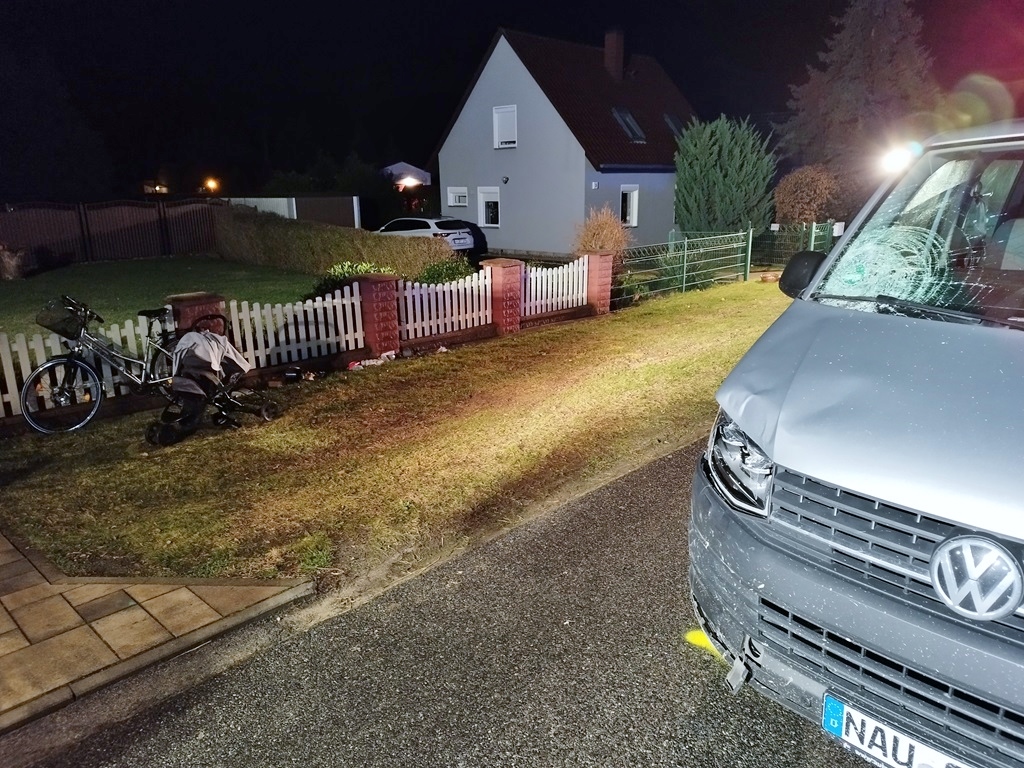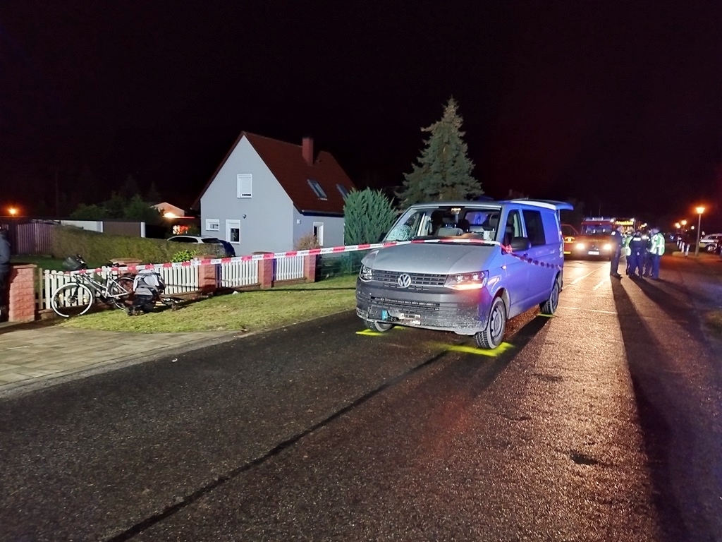 Landkreis Havelland – Amt Friesack - Gemeinde Wiesenaue – Ortsteil Warsow. Aus bislang noch ungeklärter Ursache kam es am späten Montagnachmittag in der Ortsdurchfahrt zu einem Zusammenstoß zwischen Transporter VW und einer Fußgängerin mit Kinderwagen. Bei dem Aufprall erlitt die 49-Jährige (Angehörige des Säugling) lebensgefährliche Verletzungen, sie musste an der Unfallstelle mehrmals reanimiert werden. Der Kleinkind (knapp 2.J) wurde ebenso verletzt. Drei Notärzte, mehrere Rettungswagen mit Unterstützung von zwei Hubschraubern kamen zum Einsatz.
