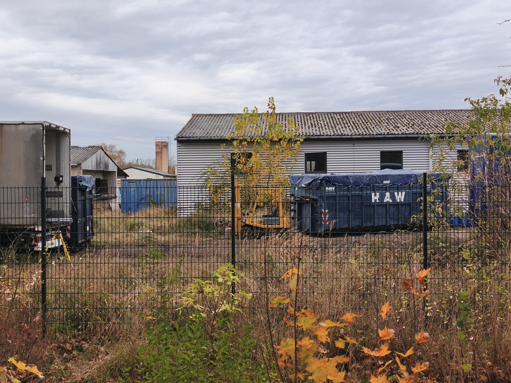 Auch am 1. November 2025 befanden sich noch Container vor der Halle.