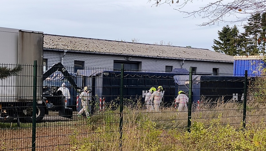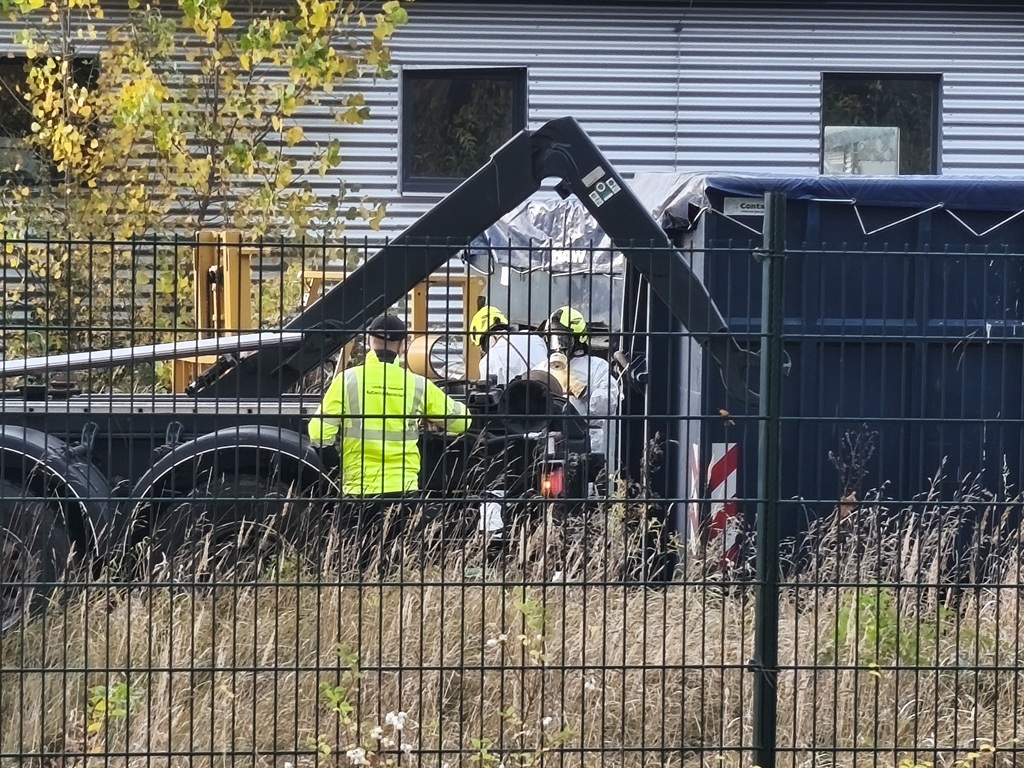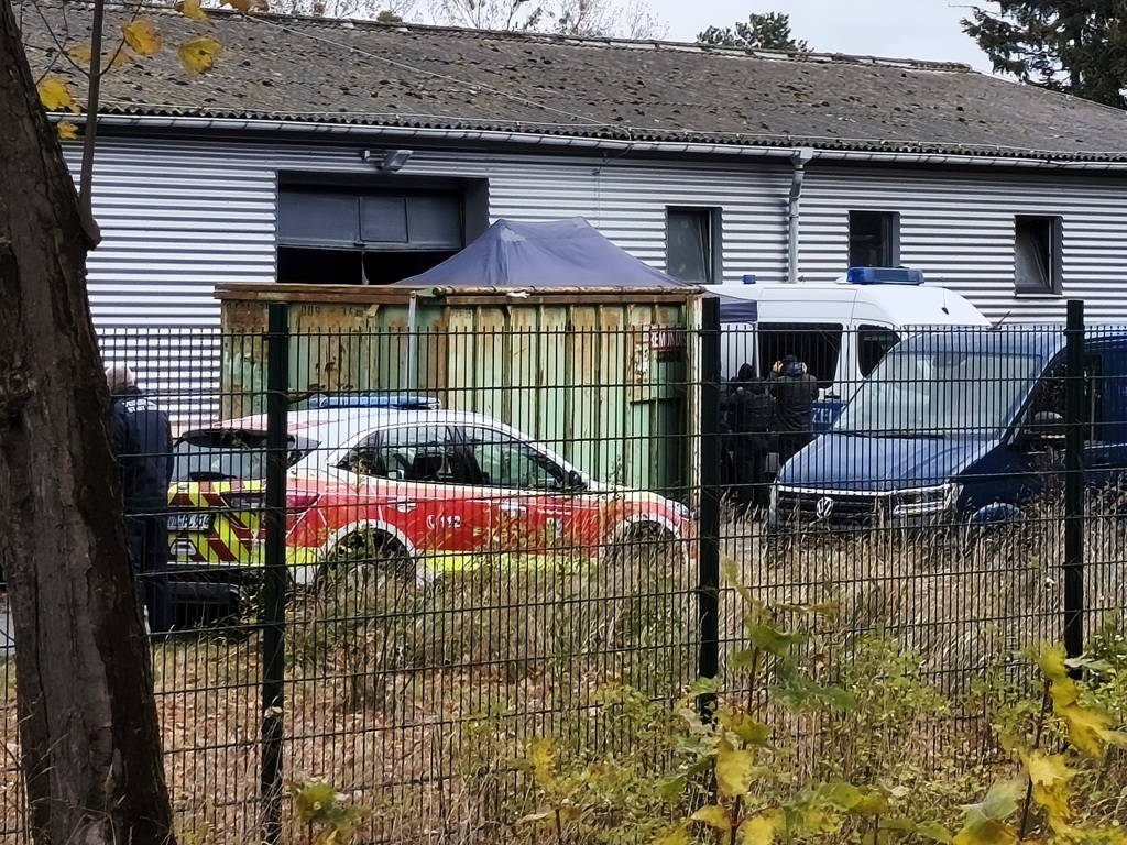 Einsatzkräfte des Zoll-Fahndungsteams Berlin-Brandenburg sind auch am Sonntag (01.11.2025) noch immer am Tatort tätig. Die Maßnahmen werden wohl noch bis Anfang neuer Woche andauern. Die gesamten sichergestellten Drogen und auch die Abfälle müssen sicher abtransportiert werden, das erfordert einen hohen logistischen Aufwand.