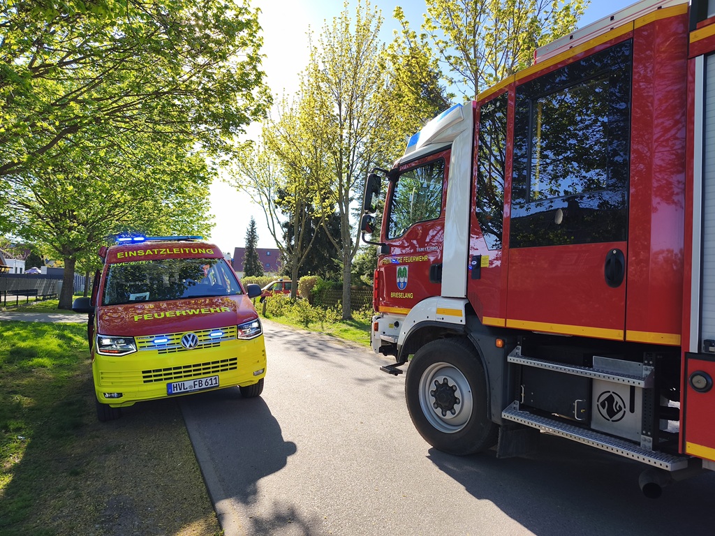 Aus bislang noch ungeklärter Ursache ist heute Morgen ein Gartenhaus in der Gemeinde Brieselang in Brand geraten. Wie die Feuerwehr mitteilte, konnten schon auf der Anfahrt der ersten Einsatzkräfte erhebliche Rauchentwicklung festgestellt werden. Das Holzgebäude stand bereits noch vor Beginn der ersten Löscharbeiten im Vollbrand. Umgehend entschied sich die Einsatzleitung dafür die Bevölkerung vor Rauchgasen zu warnen. Die Warn-App-Nina wurde dann ausgelöst für einen Umkreis von mehreren Gemeinden was auch die Stadt Nauen mit einschloss. Der Zugang zum Brandort selbst war nur auf zwei schmalen Wegen möglich, dazu mussten lange Schlauchverbindungen gelegt werden. Die Freiwillige Feuerwehr Brieselang forderte zudem Unterstützung weiterer Wehren aus Wustermark und Nauen an. Vor Ort kamen etwa 50 Einsatzkräfte der Feuerwehren mit ungefähr 14 Fahrzeugen darunter ein Drehleiterwagen zum Einsatz, auch der Kreisbrandmeister machte sich ein Bild von der Lage vor Ort.