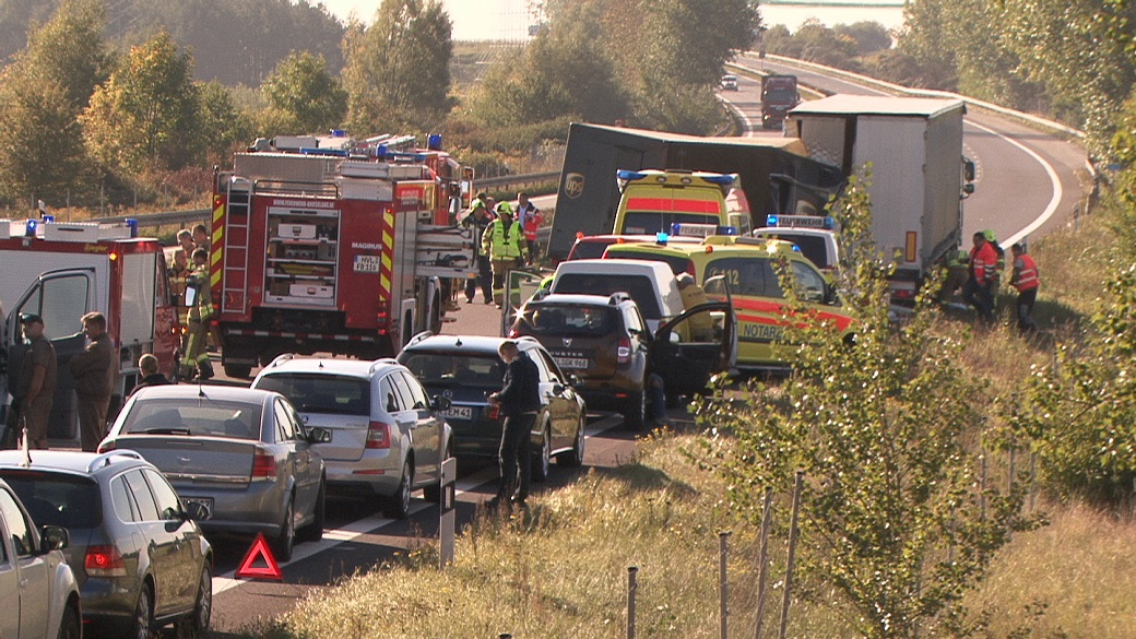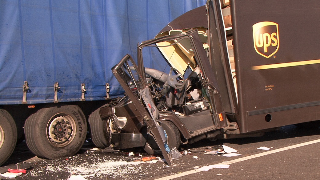 Update: 1.10.15/Video/Fotos - Vollsperrung nach Schweren Unfall mit zwei LKW - Schwerer Unfall mit zwei beteiligten Lkws auf der BAB 10 bei Brieselang. Klein-LKW vom Paketdienst UPS war nach Polizeiangaben vermutlich durch Handy am Ohr unaufmerksam, so das er den Pannenlaster der auf dem rechten Fahrstreifen stand, übersah. In der Folge raste der Klein-LKW ins Heck des Aufliegers.