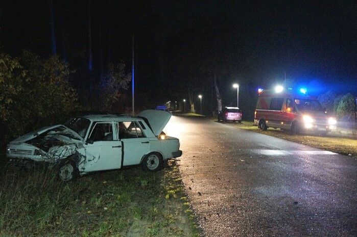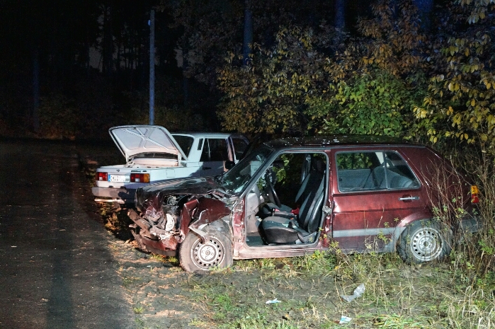 Nachtrag: 29.10.2015/Oberhavel - Zu einem schweren seitlich Frontal-Unfall, kam es am frühen Dienstagabend auf der Malzer Chaussee in Oranienburg-Friedrichthal. Hier waren aus bisher noch ungeklärter Ursache zwei PKW kollidiert. Bei den Fahrzeugen handelt es sich um einen Wartburg vom Typ 1.3 und einen VW Golf 2.