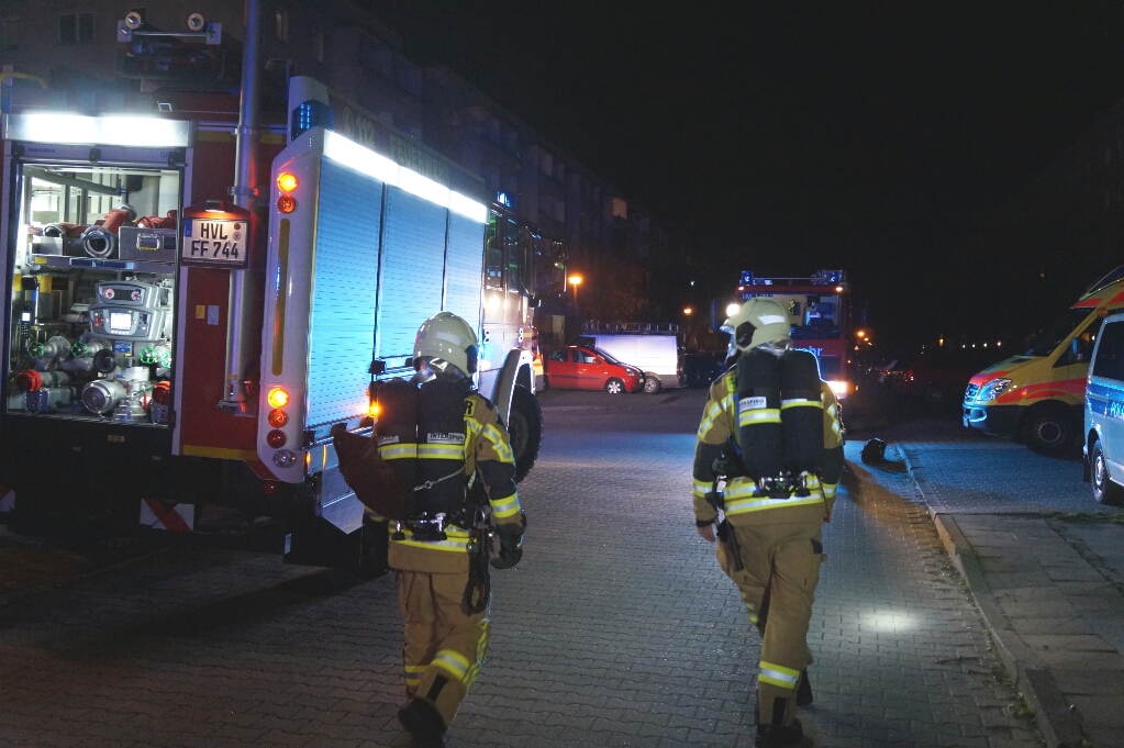 Feuerwehrangaben nach war es vielmehr ein Schwelbrand. Die Feuerwehr war mit vier Atemschutzträgern im Einsatz, konnte bei den Maßnahmen zwar keine Personen in der Brandwohnung anfinden aber sie retten drei Katzen aus dem Gefahrenbereich. Es wurden auch zur Sicherheit 12 Bewohner des betroffenen Aufgangs evakuiert. Verletzt wurde durch den Brand niemand. Bevor die Bewohner später wieder in ihren Wohnungen zurück konnten, befreiten die Einsatzkräfte der Feuerwehr mittels Überdruckbelüftung, den betroffenen Aufgang von den restlichen Rauchgasen.