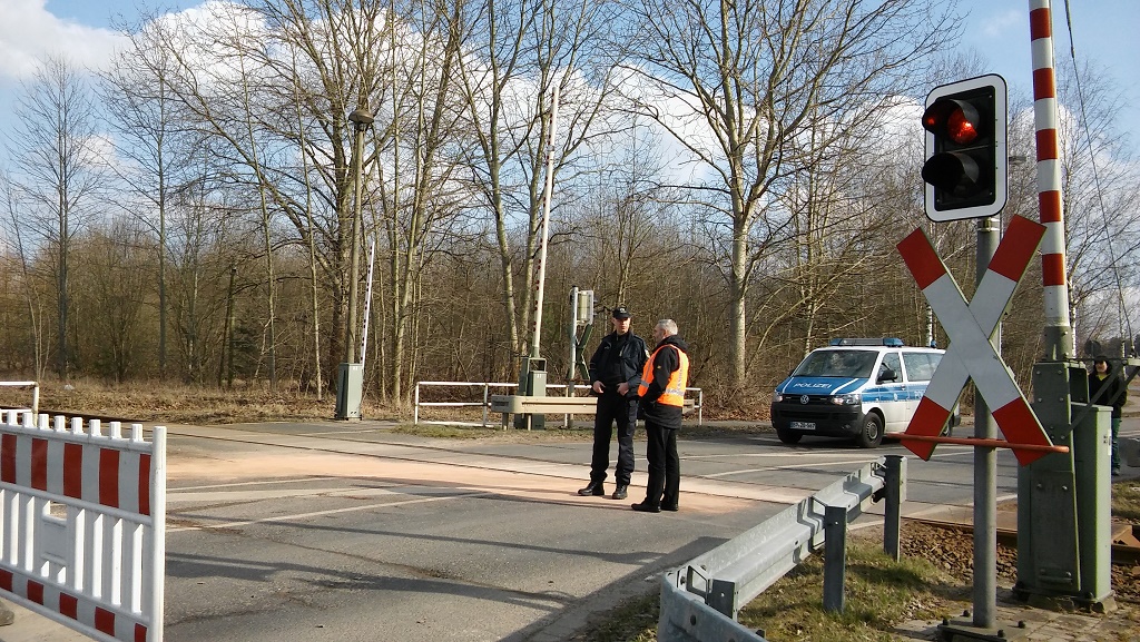 Uckermark - Templin ++ Auto mit Personenzug kollidiert ++ Am 04.03.2016, gegen 10:15 Uhr, wurde die Polizei über die Kollision eines Personenzuges mit einem PKW Nissan in Kenntnis gesetzt. Ort des Geschehens war ein Bahnübergang in der Hindenburger Straße. Die Front des Autos wurde dabei komplett beschädigt.