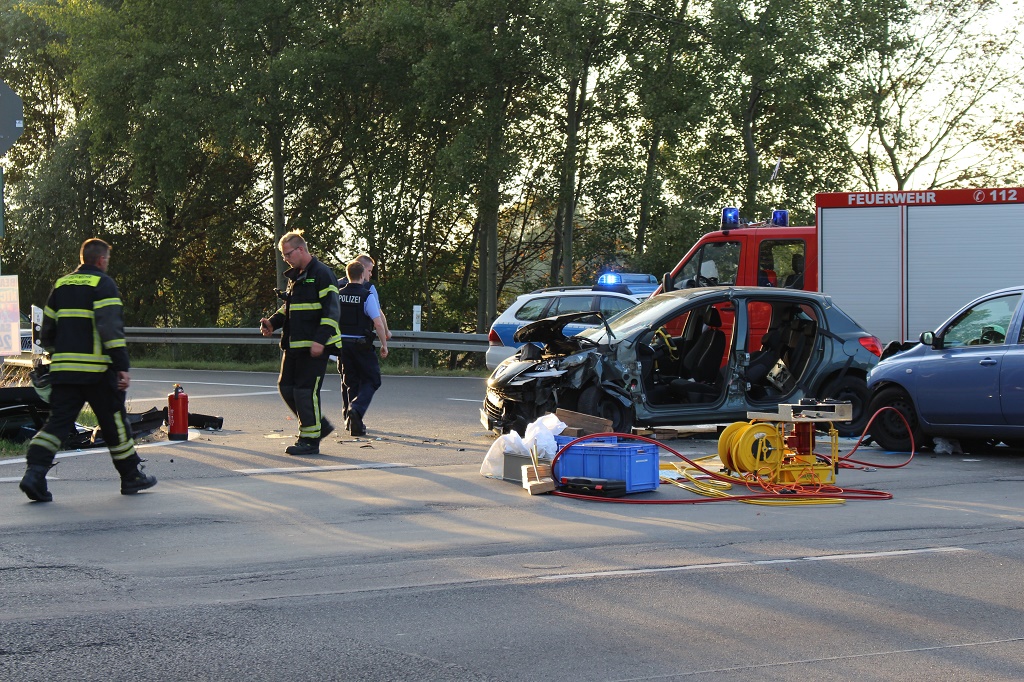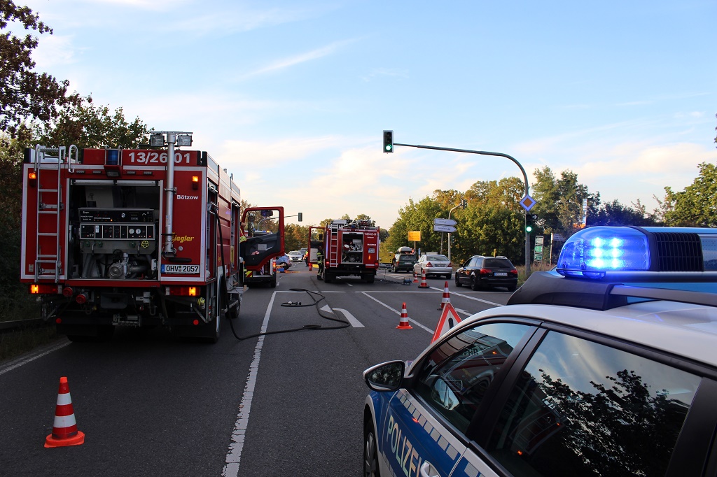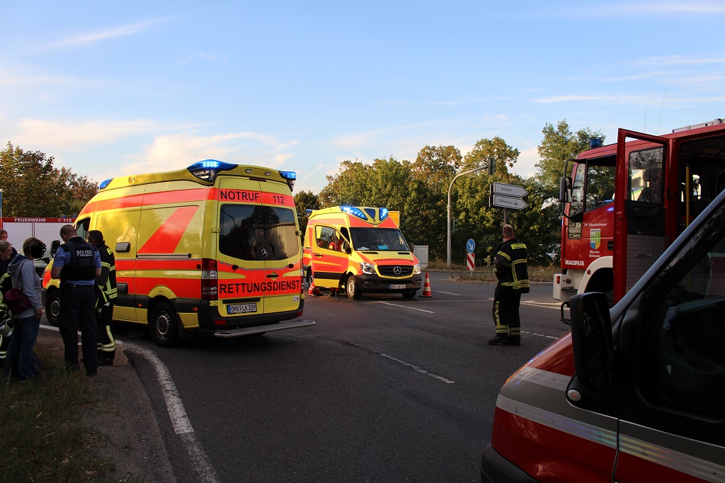 An beiden Fahrzeugen entstand erheblicher bzw. Totalschaden. Die Feuerwehr Oberkrämer war mit zahlreichen Einsatzwagen an der Unfallstelle, Zwei Rettungsfahrzeuge darunter der Notarzt per Hubschrauber wurden ebenfalls eingesetzt. Für die Dauer der Rettungsarbeiten sperrte die Polizei zeitweise und anschließend teils den Kreuzungsbereich. Die Unfallursache wird noch ermittelt.