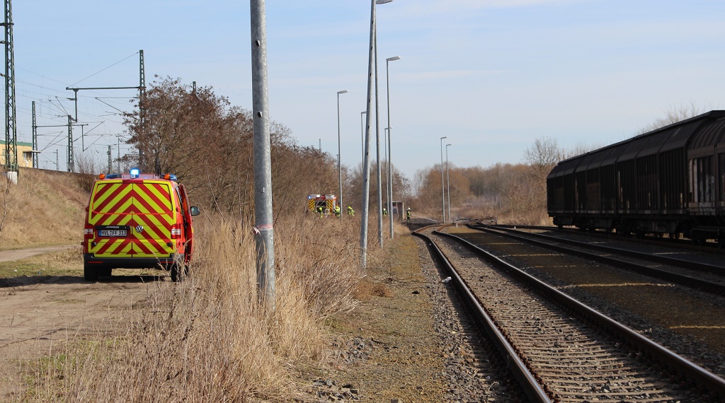 Hier war Ödland in Flammen aufgegangen. Ursache vermutlich durch Selbstentzündung, wie die Einsatzkräfte der Polizei vermuteten. Der Bahnverkehr der Hauptgleise waren durch die Einsatzmaßnahmen nicht beeinträchtigt.