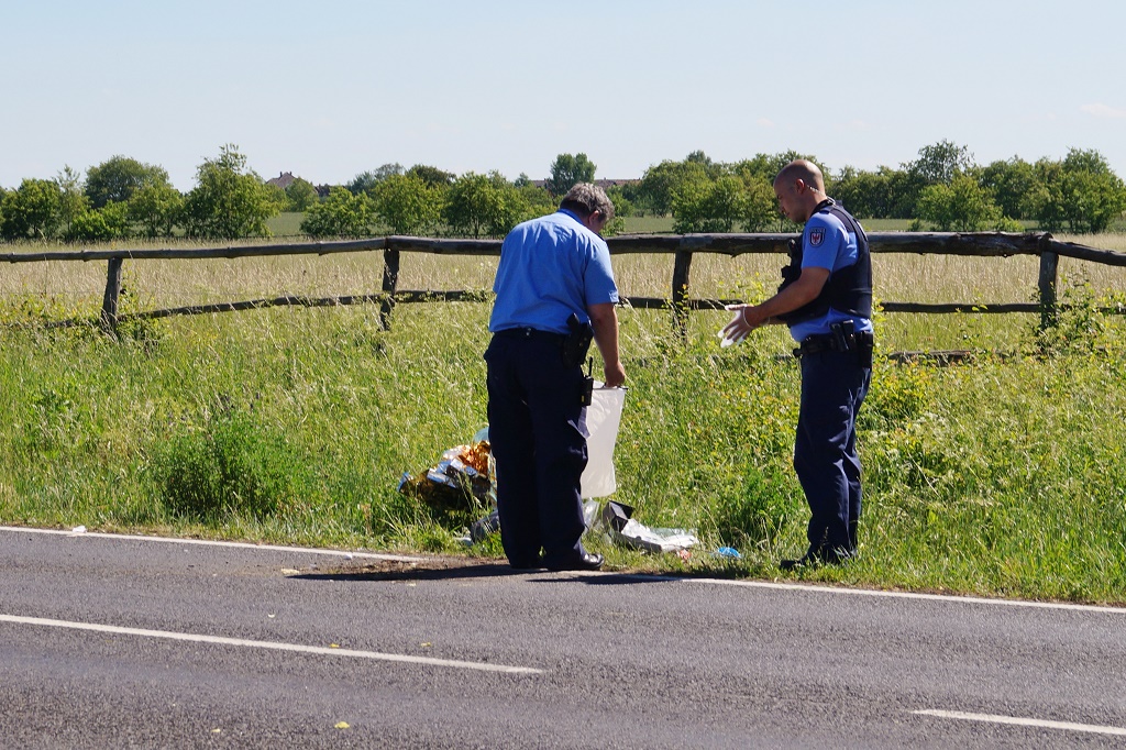 Polizeibeamte beräumen die Unfallstelle