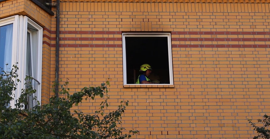 Einsatzleitung der Feuerwehr bei der Lageerkung in der Brandwohnung