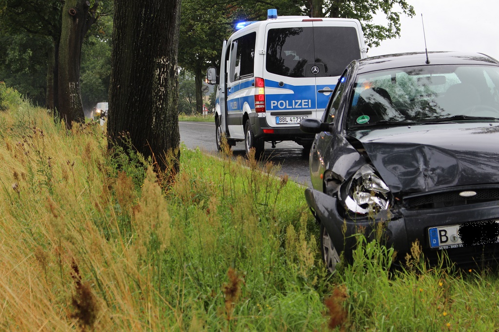 Am PKW Ford mit Berliner Kennzeichen entstand bei dem Crash auf B5 zwischen Berge und Lietzow erheblicher Sachschaden