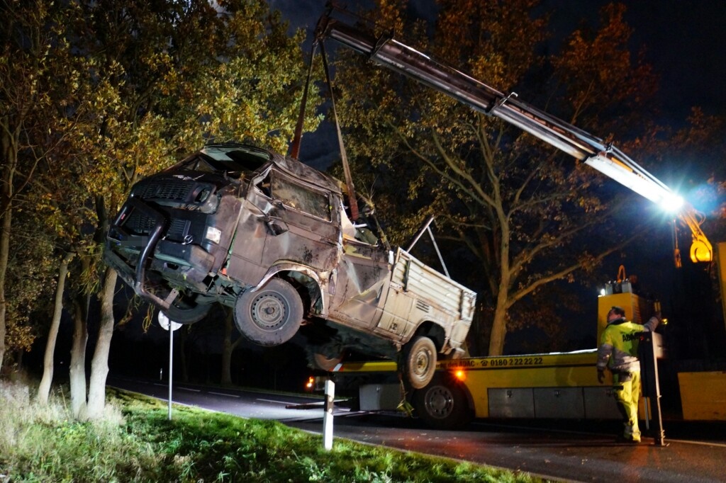 Die Kreisstraße zwischen Priort und Elstal musste für den Verkehr mehrmals zeitweise komplett gesperrt werden man Transporter entstand wirtschaftlicher Totalschaden.