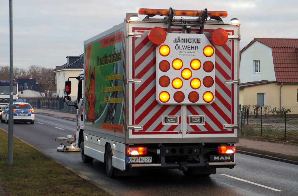 Reinigungswagen säubert die Fahrbahn an der Unfallstelle/Foto: sts-reportnet24
