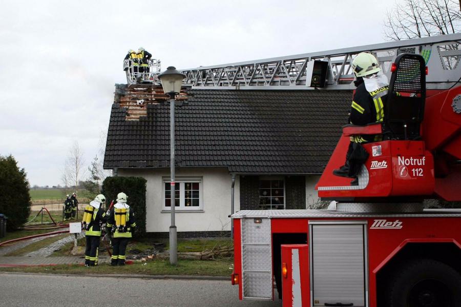Dieser musste auf Grund der sehr starken Hitzeentwicklung jedoch abgebrochen werden. Um die Wärme anzuleiten und eine Durchzündung zu verhindern wurde das Dach gekühlt und geöffnet. Nach dem Lokalisieren des Brandherdes konnte der Brand zügig unter Kontrolle gebracht und gelöscht werden. Es waren 53 Kameraden mit 10 Fahrzeugen im Einsatz. Am Wohnhaus entstand erheblicher Sachschaden.