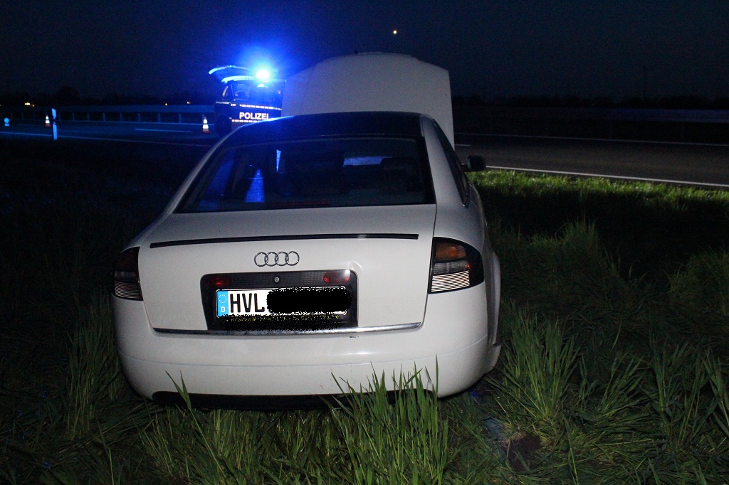 Nachtrag - B5, Lietzow - Neukammer - Von der Fahrbahn abgekommen - Freitag, 27.04.2018 – 20:30 Uhr - Aus bislang ungeklärter Ursache kam ein 20-jähriger Fahrer eines PKW Audi von der Fahrbahn ab und kam erst in einem Graben zum Stehen. Zügig eingetroffene Rettungskräfte versorgten den Fahrer, welcher verletzt schien, aber normal ansprechbar war. Er wurde zu weiteren Untersuchungen in ein Krankenhaus verbracht, sein Fahrzeug musste sichergestellt werden. Bei der Unfallaufnahme stellte sich heraus, dass der Fahrer nicht im Besitz einer Fahrerlaubnis ist. Hinweise auf einen Alkohol- oder Drogeneinfluss erhärteten sich nicht.