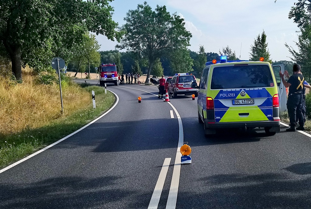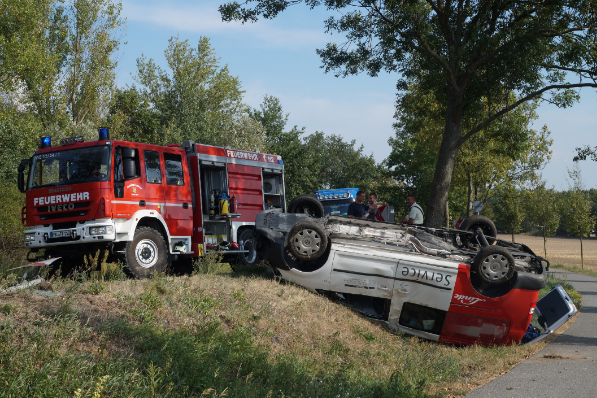 Aus bislang noch ungeklärter Ursache haben ein VW Caddy kommen aus Wustermark in Fahrtrichtung Priort nach rechts von der Fahrbahn ab und durchfuhr Straßenböschung demolierte dabei mehrere mit Verkehrs Einrichtungen (drei Leitfosten und mehrere Richtungstagfeln). Bis der Pkw anschließend im Straßengraben auf dem Dach zum Liegen kam. Der Fahrer (21) kam mit Verletzungen ins Krankenhaus. Bis zum Ende der Bergungsarbeiten musste die Kreisstraße gesperrt werden.