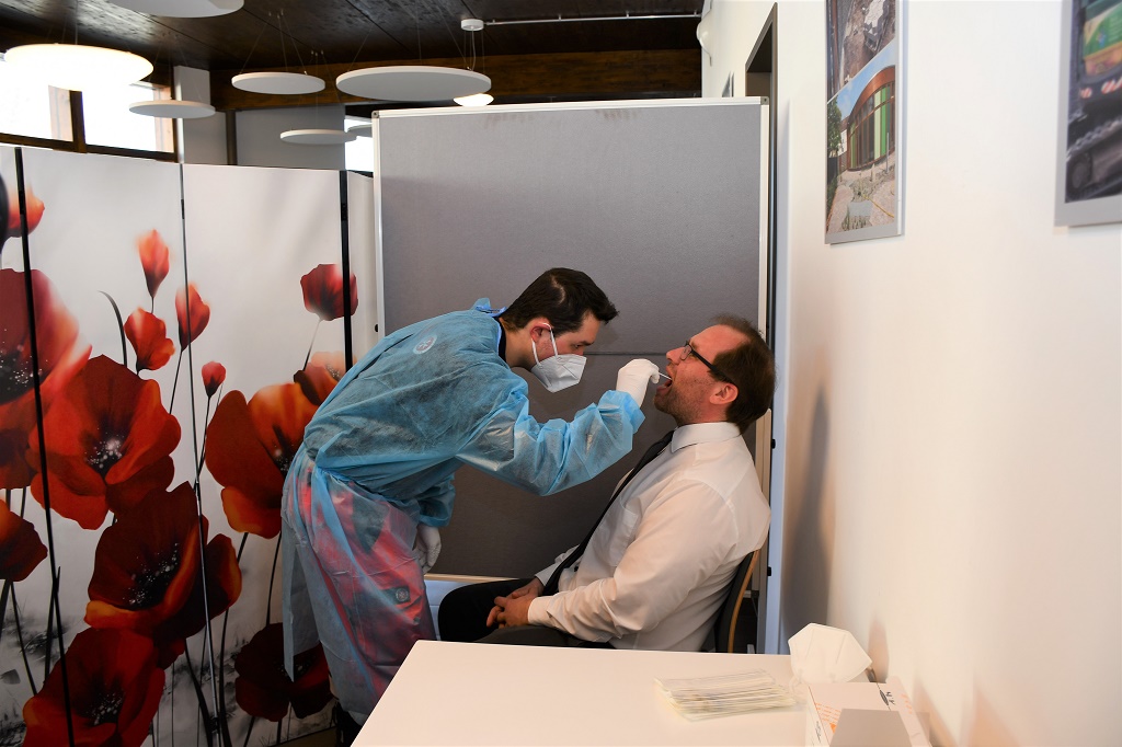 Auch Nauen hat nun ein Zentrum für Corona-Schnelltests. Seit Montag, 22.03.2021 bietet geschultes Personal der Johanniter Unfallhilfe diese Möglichkeit in der Cafeteria im Stadtbad Nauen, Karl-Thon-Straße 20, an. Nauen, 22.03.2021/ Wer die Möglichkeit eines kostenlosen Schnelltestes in Nauen in Anspruch nehmen wollte, musste bisher einen Arzt oder eine Apotheke aufsuchen. Am Montag um 9 Uhr hat die Stadt Nauen in Kooperation mit dem Landkreis und den Johannitern das erste Schnelltestzentrum innerhalb des Landkreise Havelland im Café des Stadtbads eröffnet. Bürgermeister Manuel Meger (LWN) ließ es sich zur Eröffnung nicht nehmen, sich selber testen zu lassen. Alle Akteure rechnen in den kommenden Tagen mit einer steigenden Nachfrage, da sich das kostenlose Angebot erst einmal herumsprechen muss.