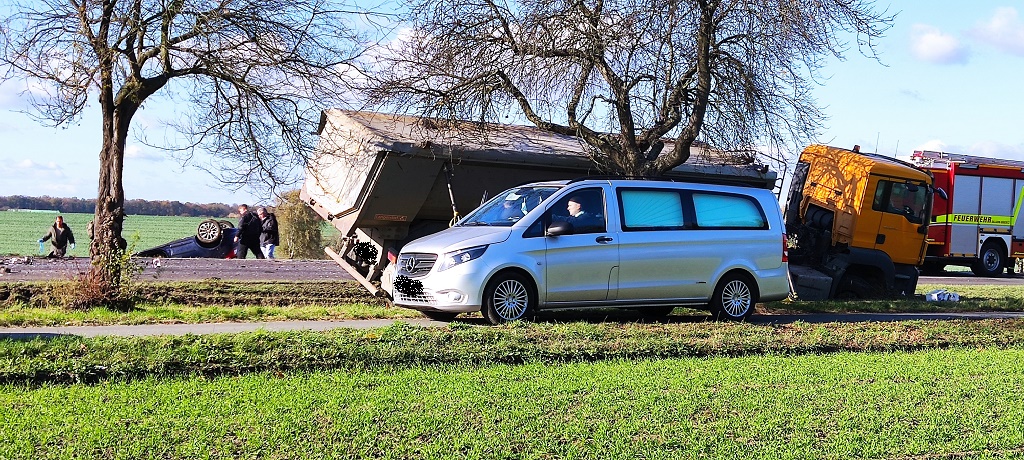 Havelland - Erstmeldung: Aufgrund eines schweren Unfalls zwischen Seeburg und Groß Glienicke ist die Landstraße 20 derzeit komplett gesperrt. Hier sind am Mittwochvormittag zwei Fahrzeuge darunter ein Lastwagen sind zusammengeprallt, die Wucht des Aufpralls war so gewaltig, der der PKW Opel sich anschließend auf dem Ackerland überschlug. Der Autofahrer erlag noch am Unfallort seinen Verletzungen.
