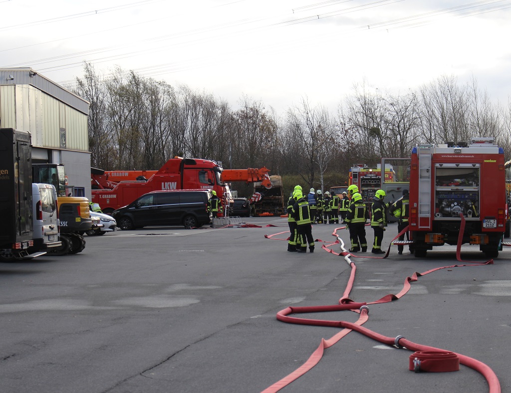 Stadtgebiet Nauen - Mit rund 10 Einsatzwagen rückte die Nauener Feuerwehr mit Ortsteile zu einem Übungseinsatz ins Gewerbegebiet an. Auf dem Gelände eines Abschlepp- und Bergungsdienst wurde der Übungsverlauf durchgeführt. Es waren etwa 46 Kräfte der Nauener Feuerwehren an dem Einsatzszenarium beteiligt.