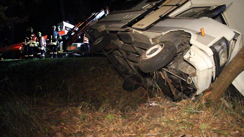 Erstmeldung – Havelland – aus bislang noch unbekannter Ursache ist am späten Dienstagabend ein Wohnwagen auf der Bundesstraße 188 bei Rathenow / Amt Nennhausen, nach rechts von der Straße abgekommen und durchfuhr dabei etwa 100 m die Böschung, bis er anschließend frontal in einen Waldbaum prallte.
