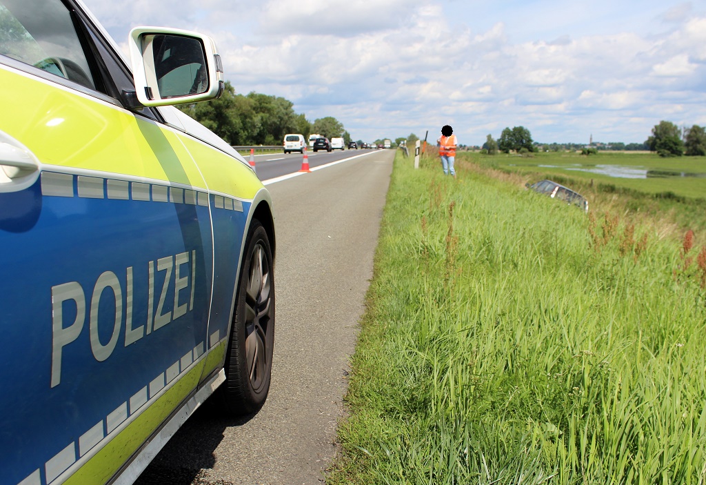 Kurzmeldung - Gem. Fehrbellin - Frau verunglückt mit PKW auf der Bundesautobahn 24 zwischen den Anschlussstellen Fehrbellin und Neuruppin-Süd in Fahrtrichtung Hamburg. Das Auto kam aus noch ungeklärter Ursache nach rechts von der Fahrbahn ab und im Böschungsgraben zum Stillstand. Es kam auf Grund des Unfalls nur zu geringen Verkehrsbehinderungen.
