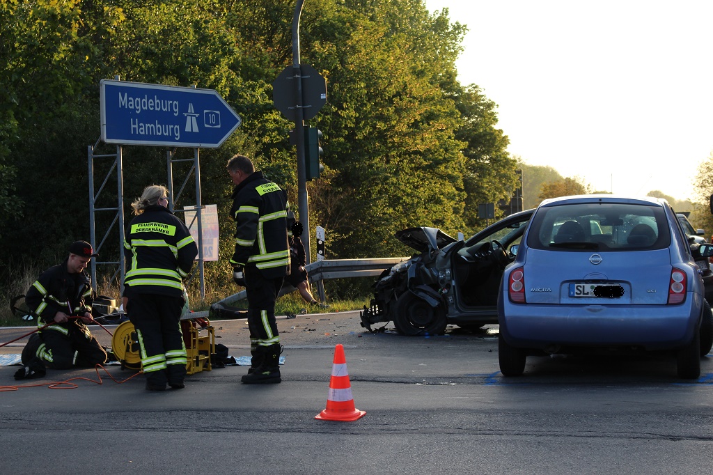 Update: 20.09.2016/Kurzmeldung - Zu einem Feuerwehr- und Rettungseinsatz kam es heute Nachmittag auf der Landstraße 17 zwischen Vehlefanz und Eichstädt, Höhe Auffahrt zur A10. Ersten Polizeiangaben nach sind zwei PKW darunter ein Nissan an der Anschlussstelle zur A 10/L17 zusammengestoßen.