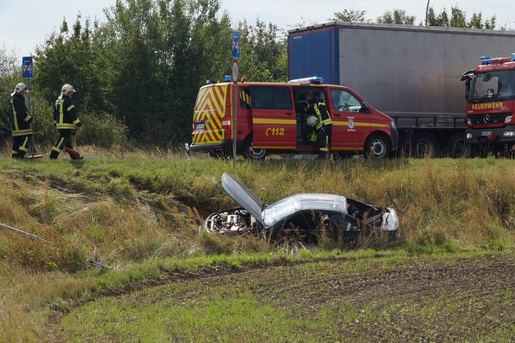 Update: 03.09.2015/Landkreis Potsdam-Mittelmark - Zu einem Unfall mit Totalschaden und zwei verletzten Personen kam es am Mittwoch zur Mittagszeit (geg. 12 Uhr) zwischen den Ortschaften Glindow und Plötzin. Aus bisher noch ungeklärter Ursache kam der Fahrer des BMW auf von der Fahrbahn (B 1) ab und durchbrach mit voller Wucht eine Mauer eines Grundstücks.
