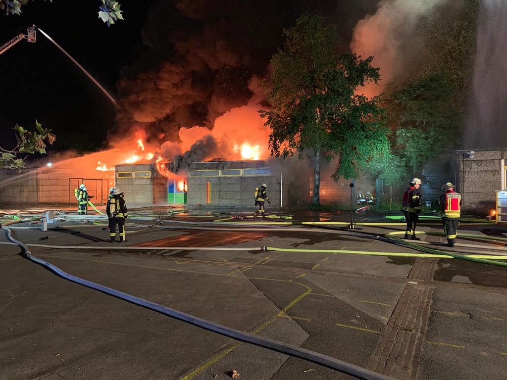 Nordrhein-Westfalen - Das Feuer konnte am frühen Morgen unter Kontrolle gebracht werden. Durch die Einsatzkräfte konnte der Brand zwischen zwei Gebäudeteilen gestoppt und ein Teil des Schulgebäudes gehalten werden. Ein Teil des Gebäudes wurde durch die Flammen komplett zerstört, die gehaltenen Räume wurden aber durch Brandrauch und Löschwasser erheblich beschädigt. Die Nachlösch- und Aufräumarbeiten wurden in der Zeit von 08:00 Uhr bis 11:30 Uhr durch Einsatzkräfte der Feuerwehren Hilden und Wülfrath (Kreis Mettmann) sowie der Löschgruppe Hubbelrath der Freiwilligen Feuerwehr Düsseldorf durchgeführt.