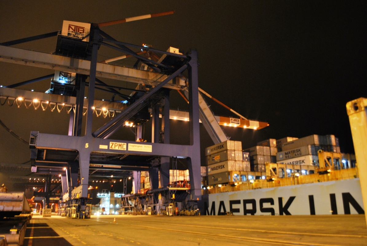 In der Nacht zum Donnerstag ist an der Stromkaje des Containerterminals ein Teil einer Containerbrücke zum Be- und Entladen der Schiffe abgebrochen und in das darunter liegende Schiff gestürzt. Der 52-jährige Fahrer der Brücke stürzte in seiner Gondel ebenfalls mit ab. Die Einsatzkräfte versuchen jetzt, den Mann zu bergen. Gegen 0.45 Uhr wurden die Hilfs- und Rettungskräfte alarmiert und an die Stromkaje beordert. Der Brückenausleger war bei Ladearbeiten plötzlich abgebrochen und ist etwa 50 Meter tief bis auf den Boden des Schiffsladeraums gestürzt. Dabei hat sich der Arm zwischen dem Containerschiff Maersk Karachi und der Containerbrücke verkeilt. Er liegt jetzt schräg im Schiff. Die Einsatzkräfte sind zurzeit dabei, zu dem unter den Trümmern liegenden Brückenfahrer vorzudringen. Die Rettungsmaßnahmen sind sehr schwierig, weil die beschädigte Containerbrücke jetzt sehr instabil ist. Dazu kommen Bewegungen des Schiffes, die durch den Tidenhub verursacht werden. Mit Schleppern wird versucht, das Schiff bestmöglich zu stabilisieren. Die Weser wurde als Wasserstraße zunächst für den Schiffsverkehr gesperrt. Inzwischen wurde auch ein Schwimmkran angefordert, um den Einsatz zu unterstützen. Die Bergung des 52-Jährigen hat jetzt oberste Priorität. Die Maßnahmen dauern noch an (Stand 9:30 Uhr). Warum die Containerbrücke gebrochen ist, ist noch völlig unklar. Die Kriminalpolizei hat die Ermittlungen dazu aufgenommen. Weder das Schiff, noch andere Personen sind zurzeit in unmittelbarer Gefahr.