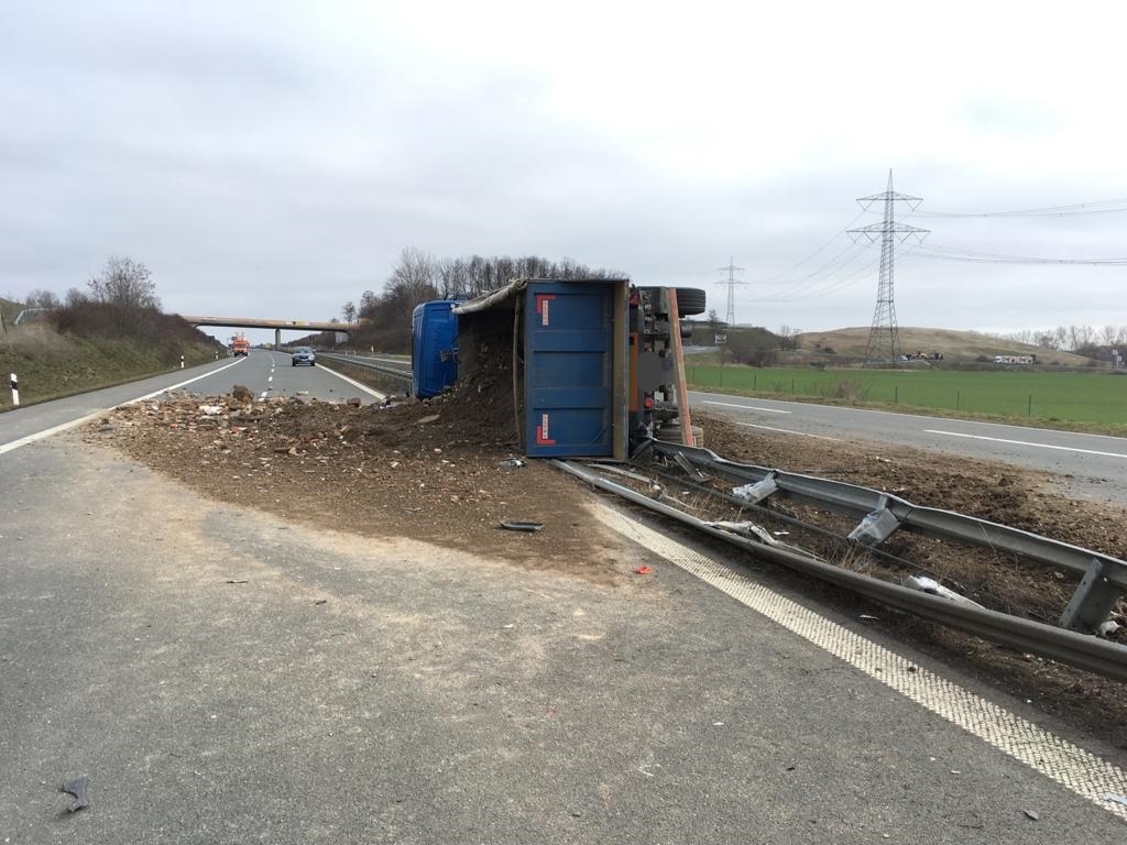 Der LKW kippte und kam quer zur Fahrtrichtung auf der Leitplanke zum Liegen. Dabei verteilten sich mehrere Tonnen Bauschutt auf beiden Richtungsfahrbahnen der A 36. Der 61-jährige Fahrzeugführer verletzte sich durch den Unfall leicht und kam mit dem Rettungswagen in ein Krankenhaus. Weitere Personen kamen nicht zu Schaden. Durch die Kollision wurde die Mittelschutzplanke auf einer Länge von 55 Metern beschädigt. Die A 36 musste komplett gesperrt werden. Der nachfolgende Verkehr wird in Fahrtrichtung Niedersachsen an der Anschlussstelle Quedlinburg-Mitte und in Fahrtrichtung Bernburg an der Anschlussstelle Thale von der Autobahn geleitet.