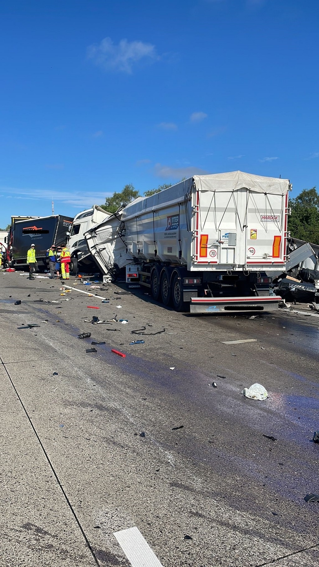 Der 55-Jährige sowie der 46-jährige Fahrer aus dem dritten LKW wurden schwer verletzt und mit Rettungswagen in umliegende Krankenhäuser gebracht. Der 46-Jährige musste zuvor durch die Feuerwehr aus seiner Fahrerkabine befreit werden, da er durch den Zusammenstoß in dieser eingeklemmt war. Der Unfallfahrer aus dem auffahrenden LKW erlitt ebenfalls schwerste Verletzungen. Ihn flog ein Rettungshubschrauber für weitere medizinische Behandlungen in die nächstliegende Klinik. Der vierte Fahrer des vordersten LKW blieb unverletzt.