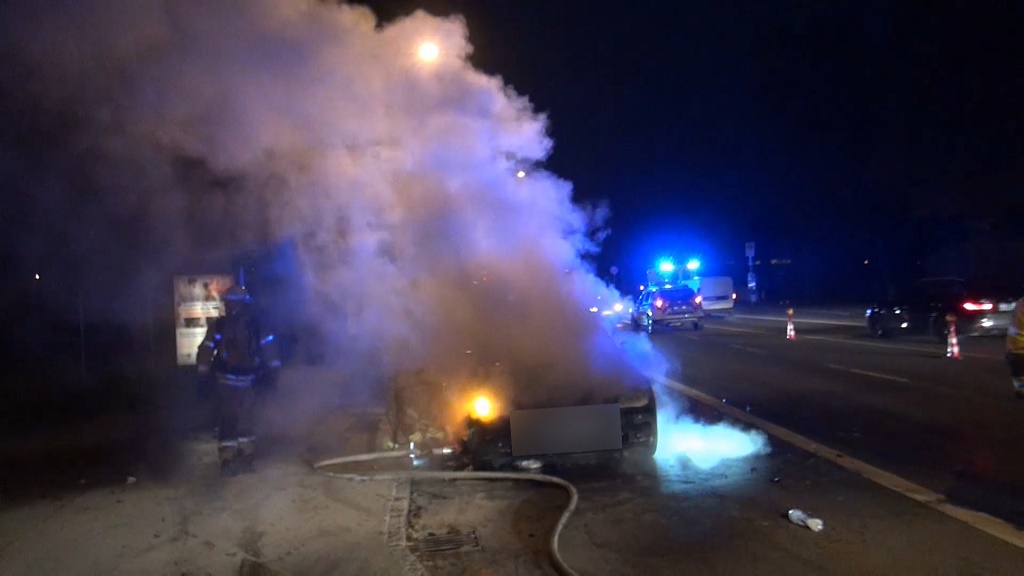 Nach ersten Informationen fuhr ein BMW auf der Salinenstrasse vom Kreisverkehr Richtung Eisstadion. Plötzlich bemerkte der Fahrer das Rauch aufstieg. Er lenkte den Wagen auf eine Bushaltestelle und wollte gerade nachschauen, als Flammen aus der Motorhaube schlugen. Sofort alarmierte der Fahrer die Feuerwehr. Die Feuerwehr Schwenningen rückte mit drei Fahrzeugen an die Einsatzstelle aus und unter Atemschutz wurde mit dem Löschangriff begonnen. Warum der Motor ins Brennen kam, ist nicht klar, die Polizei Schwenningen hat die Ermittlungen aufgenommen. Nachdem die Feuerwehr den Brand gelöscht hatte wurde mit der Wärmebildkamera kontrolliert, ob alle Glutnester erloschen sind. Dann wurde der BMW der einen wirtschaftlichen Totalschaden erlitt abgeschleppt. Durch den Brand musste die Salinenstrasse gesperrt werden, es entstand ein leichtes Verkehrschaos im abendlichen Verkehr.