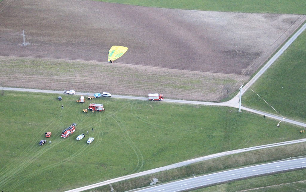 Zwei Betonmasten wurden ebenfalls stark beschädigt. Die Passagiere, die die Ballonfahrt bei einer hiesigen Tageszeitung gewonnen haben, kauerten sich instinktiv in dem Korb zusammen somit wurden wahrscheinlich schlimmere Verletzungen verhindert. Der Ballonfahrer gab an nochmals an Höhe gewinnen zu wollen dabei erkannte er die Stromleitungen zu spät. Die sofort alarmierten ehrenamtlichen Kräfte der Feuerwehr Altensteig, der Notarzt und dein Rettungswagen waren nach wenigen Minuten vor Ort. Zwischenzeitlich hat die Bodenbesatzung des Ballonbesitzers die gefährliche Personenrettung aus dem Korb vollzogen.