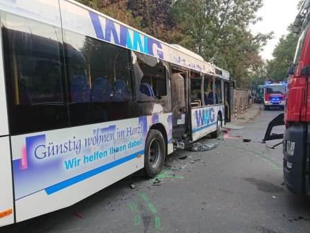 Aufgrund des Unfalls wurden insgesamt 17 Kinder sowie der 48-jährige Busfahrer aus der Gemeinde Huy leicht verletzt. Erste Informationen, dass ein Kind schwer verletzt wurde, haben sich nicht bestätigt. Die verletzten Kinder wurden durch den Rettungsdienst in umliegende Kliniken gebracht. Am Bus entstand ein geschätzter Sachschaden in Höhe von ca. 120.000 Euro, am Lkw in Höhe von ca. 15.000 Euro. Der Unfallort war bis 09:30 Uhr voll gesperrt.