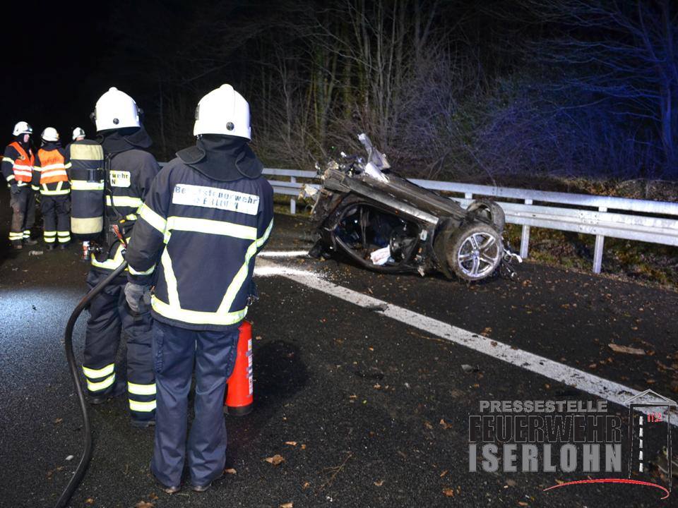 Nordrhein-Westfalen - Um 00:20 Uhr wurde die Feuerwehr Iserlohn zu einem Verkehrsunfall auf die Autobahn 46 zwischen Iserlohn - Zentrum und Seilersee alarmiert. Hier war aus unbekannter Ursache ein PKW von der Fahrbahn abgekommen.