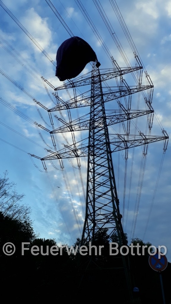 Nordrhein-Westfalen - Bottrop (ots) - Bei einem Unfall mit einem Heißluftballon mussten am Sonntagabend 6 Personen aus ca. 65 m Höhe gerettet werden. Um 17:33 Uhr war der Heißluftballon aus ungeklärter Ursache an der Spitze eines Strommastes an der Essener Straße hängengeblieben. Die ersteintreffenden Kräfte nahmen zunächst per Megaphon Kontakt zu den Personen im Korb auf.