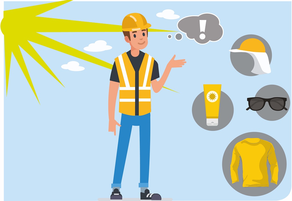 Wer im Freien arbeitet sollte seine Haut schützen. Dazu gehören Sonnencreme, Sonnenbrille, Kopfbedeckung und Bekleidung mit langen Ärmeln. /Foto: BG ETEM / Sandra Burkert