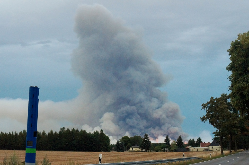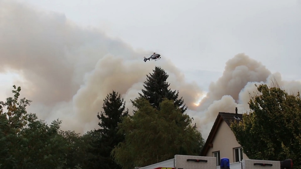 Potsdam-Mittelmark: Und wieder ist im Landkreis Potsdam-Mittelmark ein großer Waldbrand ausgebrochen. Schon seit dem frühen Nachmittag ist die Feuerwehr mit der Brandbekämpfung beschäftigt. Die Rauchentwicklung erstreckte sich bis zum Abend auf einer Fläche von über einem Kilometer hin. Es unterstützen Wehren aus Teltow-Fläming, Elbe-Elster und dem Havelland. Bis Freitag werden 600 Einsatzkräfte bei den Löscharbeiten eingesetzt werden. Drei Hubschrauber darunter zwei für den Löschangriff von oben unterstützten die Feuerwehr zusätzlich.
